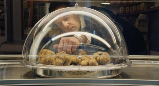 And there’s lots of money to be made. Franco, the buyer, negotiates with the hunters, paying them a fraction of what the truffles will fetch when he sells them. The economic disparity is on display. The hunters live simply, while those who eventually buy and consume the truffles can afford to pay the price. We see one of the men who bought truffles at the market sit down to a plate of fried eggs with fondue. A server tops the dish with a generous portion of truffles. With opera music playing, he slowly eats, savoring each bite. “I like it. Very good,” he says.