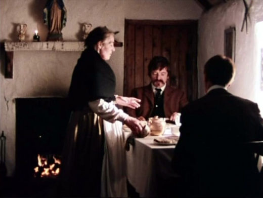 A man is asked what brought him back. “I had two elder brothers that went to America. I had to come back for family. My wife died, potatoes went black, the cows died of disease of the brain. Here I am, no animals and young children runnin’ wild. If it weren’t for them, I’d be off this evenin’. I don’t know how I’m supposed to be livin’ in this place at all. I ask myself how poor people can go on executin’ their religion.” Government distribution of land after famine is a pervasive issue.