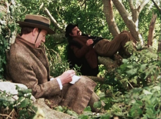 Filmmaker Margy Kinmonth is half Irish. Looking for a story about Yeats in Manchester Guardian microfilm, she chanced upon the greatly unknown articles and was inspired to create a “road movie across the west of Ireland” that looks very much as if it was shot during the time depicted. With Patrick Laffan as Synge, Tom Hickey playing Yeats, and resonant narration by John Huston, we follow the genial, curious men on foot, horse cart and boat as they talk to locals and Yeats sketches. (Original artwork is shown.)