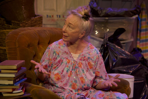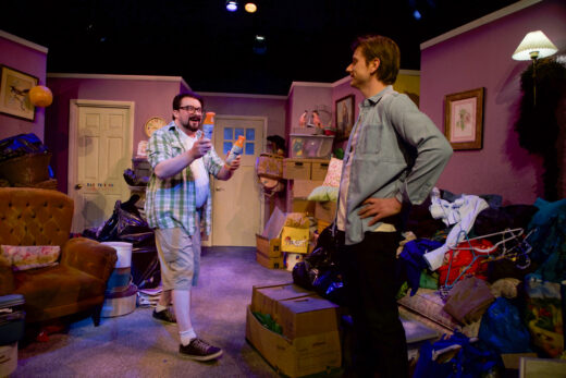 “Jesus Christ, Jacob, why didn’t you tell me it got this bad?” Danny (Gabriel Rysdahl) has flown from Florida to New York to help his brother Jacob (Kirk Gostkowski) clear out mom Angie’s house. After numerous warnings of foreclosure she denies having received, eviction will occur in 14 hours. Angie (Sachi Parker) is a serious hoarder. The place stinks of cat piss. Everything is filthy, piled high. What comes into this house never leaves. David Henderson’s excellent set makes one itch.