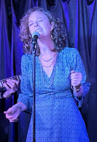 Two by the recently passed Kris Kristofferson include “Sunday Morning Coming Down” performed in Calo’s slightly lower, throaty register and a mid-tempo, traveling music version of “Me and Bobby McGee” with “la, da ,das,” very unlike Joplin’s interpretation. Adamy tips back and forth, head nodding as if facing wind out a car window. Appreciation of songs is vividly apparent.