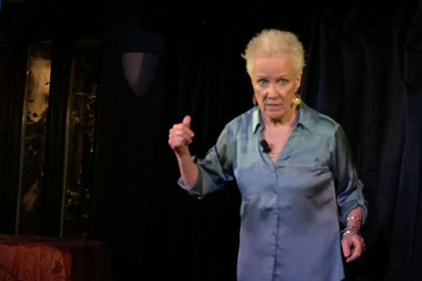 This is the second time I’ve attended a show by monologist Tulis McCall. She’s no less angry, no less honest, no less acerbically funny. The artist admits to 68, but refuses to go gentle into that good night (Dylan Thomas). McCall faces herself in the mirror with a “volcano of regrets” and observes aging with vitriol familiar to anyone in middle years or beyond. “You know you’re getting older when you look at a photo of your parents and think, dang, they were young!!”