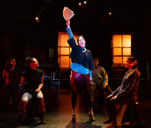 Stephanie Block rails that she feels like she’s playing Margaret Atwood’s The Handmaid’s Tale in which sexually servile women are the property of the state. “I know this must seem very strange, but ordinary is what you’re used to…,” she quotes an ostensibly reassuring matron from the book. “…under Regan, the AIDS crisis slogan was Silence=Death. What’s ours, Pussy’s Grab Back?! I hate it! It doesn’t even make sense!…If you…I’ll cut off your fucking hand!” The actress is cranked up and naturalistic.