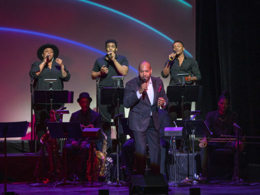 The audience, most of whom grew up with these songs, dances in its seats with Cooke’s “Cupid”: Cupid, draw back your bow/And let your arrow go/n Straight to my lover’s heart for me, for me…which ends in high tenor. Its arrangement is unexpectedly slowed/savored unlike that to which we’re accustomed and works wonderfully.