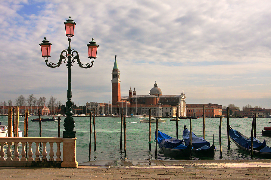 Top Bigstock Photo: Venetian lamppost gondolas on Grand Canal and San Giorgio Maggiore Church in Venice, Italy.
