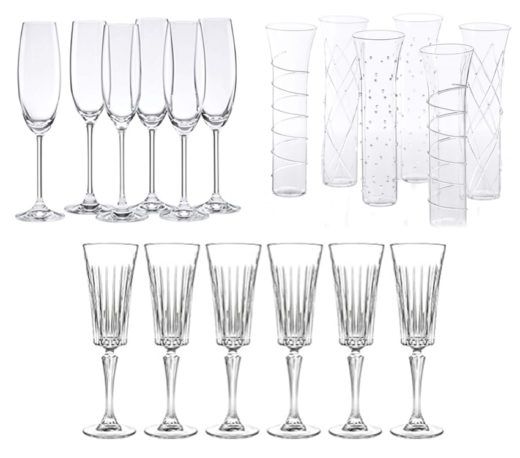 Right: La Tasse Noir Crystal Champagne Flutes: Set of 4. 100% Lead – Free Dishwasher Safe. 6 oz. $32.97