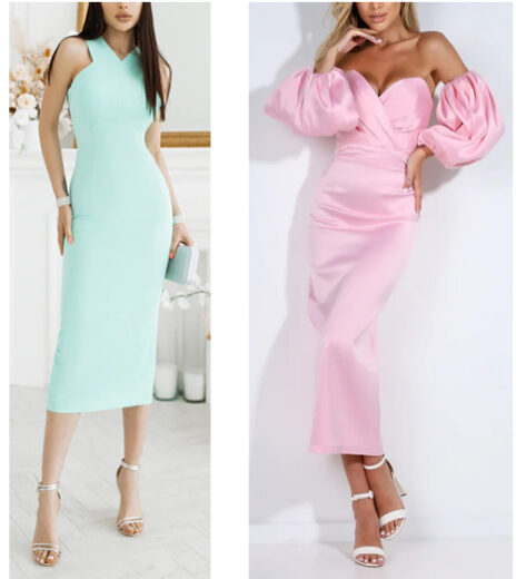 Right: Pink Puffed Sleeve Midi Dress: 35%, Polyester 35%, Cotton 20% Nylon Hidden zipper Separate sleeves Colors: White, Emerald, Pearl-White, Black, Tiffany-Blue, Red, Sky-Blue, Red Sale $129.47