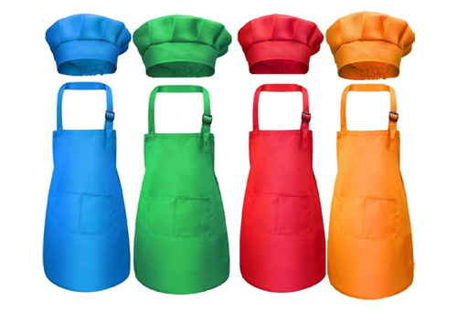 More than one child? M-Aimee 4 Pieces Kids Apron Set: Adjustable (elastic band in back to allow for better fit) Cotton Child Aprons with 2 Pockets. Breathable, machine washable, cotton canvas. Suitable for kids’ age from 7-13 years old. $17.89