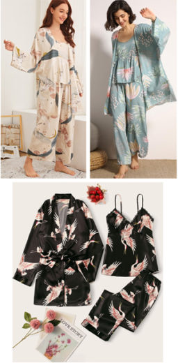 Floral Print Cami PJ Set & Robe: Spaghetti strap neckline. Long sleeve, sashed robe. Elastic waist. Satin polyester/spandex. $22.95
