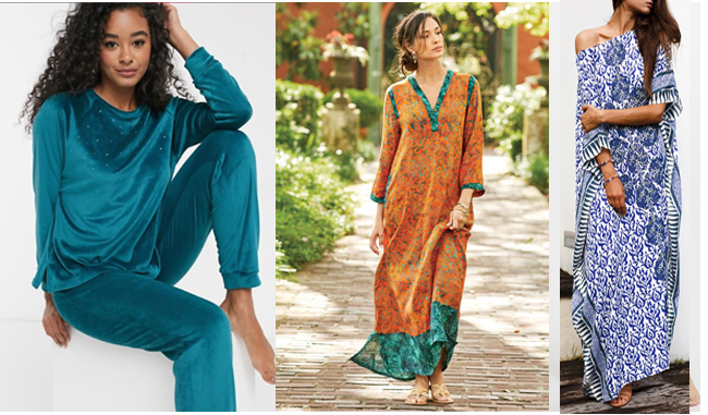 ‘Really! Who’s going to see you anyway.?! Lounge Clothes or pretty pajamas make you feel fresher whether sharing the space with a mate, a pet, video-chat, or just memories. Here are some things you can throw on and be comfortable.