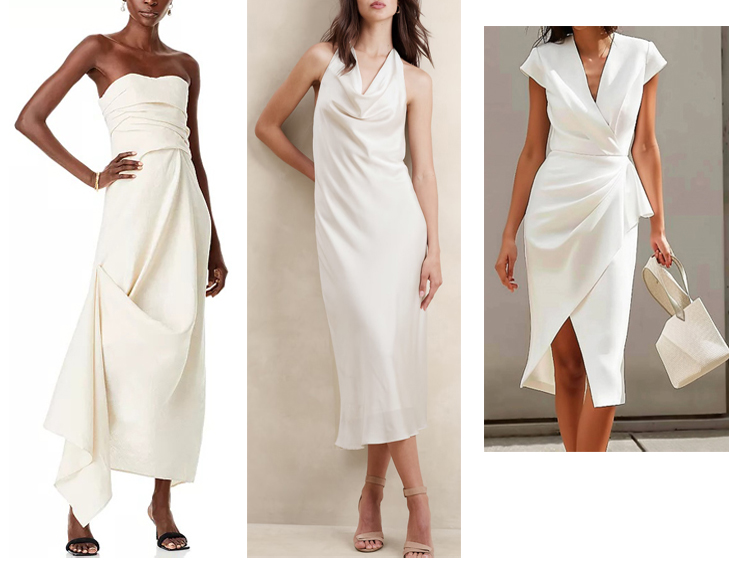 Left: Stacey Gathered-Side Midi-Dress by Reiss: Crewneck Sleeveless Gathered waist Back keyhole Concealed back zip closure 97% viscose/3% elastane About 50.25″ from shoulder $385.00