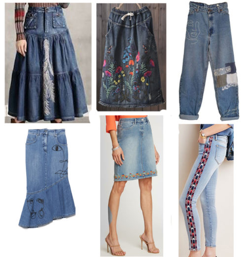 2019 New Tassels Cotton Denim Mid-calf Skirt: Elastic Waist. A-line. Embroidery. About ankle length. Sale $30.00