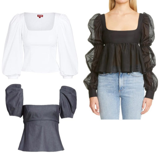 Lana Top by Staud: Lightweight stretch, cotton spandex. Square neckline and empire waist 3/4 balloon sleeves with button cuffs .Hidden zipper at side. $195.00