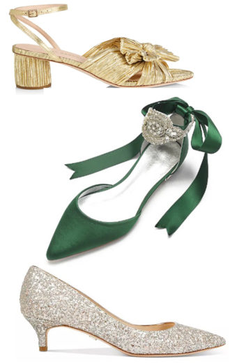 Madison Kitten Heel Pumps by Badgley Mischka: Pointed toe .Allover glitter 1.6″ heel Glitter fabric upper, leather lining and sole. $198.00