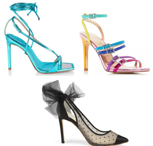 Black Evening Shoes w Oversized Rhinestone appliqué: Satin pointy toe 3” heels and removable ankle strap with added oversized rhinestones appliqué. Synthetic upper and lining. Mandmade outsole. $112.00