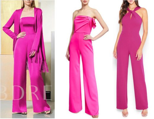 Left: Column Evening Jumpsuits with Long Sleeves Jacket: Satin chiffon. Empire waist. Endless other colors. $174.03