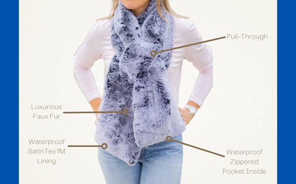 Opening: Silver Mink Faux Fur Scarf by Pretty Rugged: Faux fur and waterproof SatinTex™ lining. Waterproof pocket. Machine washable $60.00