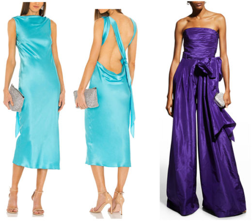 Left and Center: Max Dress by The Bar: Pull-on styling with asymmetrical back tie. Unlined Boat neck Slouchy back. 100% silk. $395.00