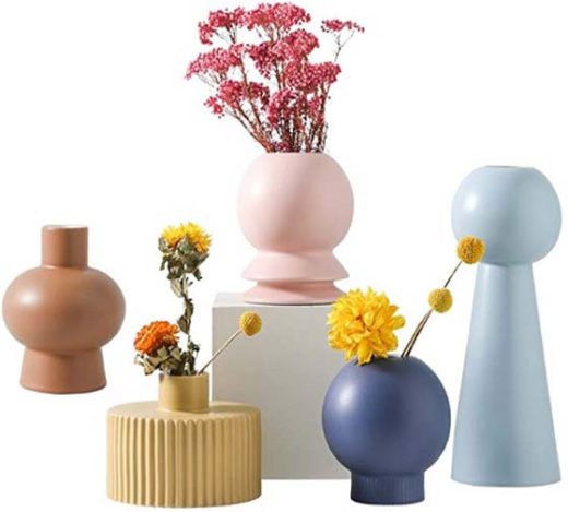 Set of Ceramic Vases by Hello Home: Pink+dark Blue+brown+light Blue+yellow. Smooth, bright glaze. Set of 3 $69.99, Set of 4 $89.99, Set of 5 $107.99