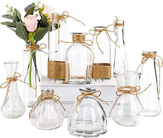 Set of 10 Nilos Glass Vases with Rope Design: Vintage milk bottle material. 3.94 x 3.94 x 0.39 inches. $24.99