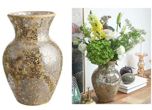 Tall Mosaic Glass Vase (Gold): 7” x 10.5”. $29.99