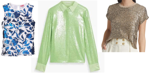 On trend sequin tops will jazz up day (for creative businesses ) or night separates.