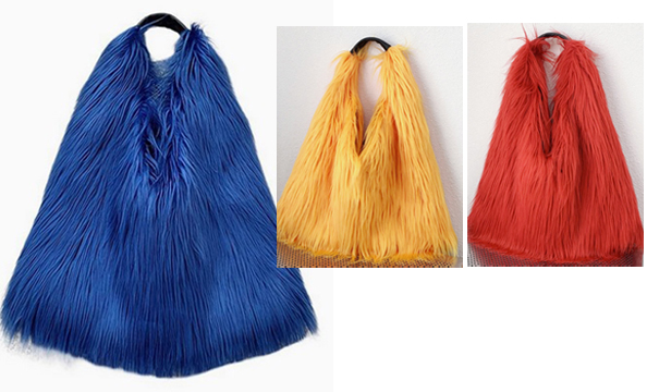 Large Faux Fur Carryall: 19.69″ × 1.97″ × 23.62″ One main pocket, one interior patch pocket Buckle closure 11 colors Sale $35.99