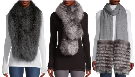 Long Hair Faux Fur Pull Through Scarf by Jocelyn: Front side: 76% acrylic/24% polyester. Back side: 100% Polyester. 4.5″W x 36″L $70.00