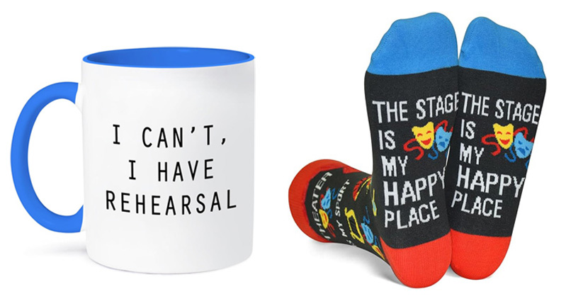 Left: I Can’t, I Have Rehearsal Ceramic Mug: Choice of 6 interior colors Microwave safe $11.99