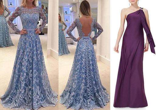 Right: V-Neck Backless Evening Dress– Moves for dancing. Youthful but not juvenile. Blue, white or red polyester chiffon. On sale $45.24