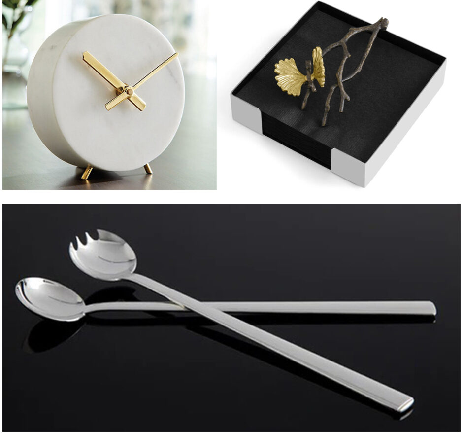 Butterfly/Ginko Coctail Napkin Holder by Michael Aram: 5.25″L x 5.25″W x 1.75″H Stainless Steel Natural & Oxidized Brass Powdercoat Black or marbled napkins included Sale $60.00