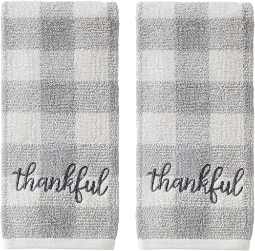 Thankful plaid hand Towels. Keep the theme going when your guests visits the bathroom. These towels are absorbent and deliver your message.