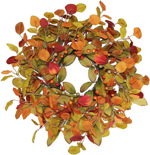 Green eucalyptus and berries wreath. Welcome your guests even before they step inside with this beautiful seasonal wreath.