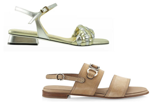 Left: Barbra Woven Napa Ankle-Strap Sandals by Ron White: Also in black. Tubular braided napa leather All day heels®technology which includes nasa created poron cushioning and arch support 1” covered heel Open toe Adjustable ankle strap Leather lining Rubber outsole $395.00