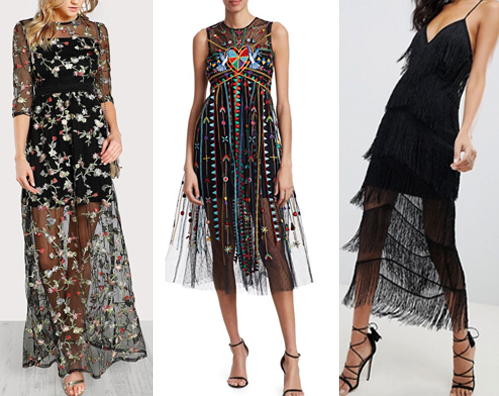 Mesh is that very thin, soft net-like fabric that often acts as an overlay or base on which to embroider/appliqué. A mesh dress fits like tender, second skin. A mesh inset/cut-out lets skin show through. Mesh is light, packable, and very much in trend.