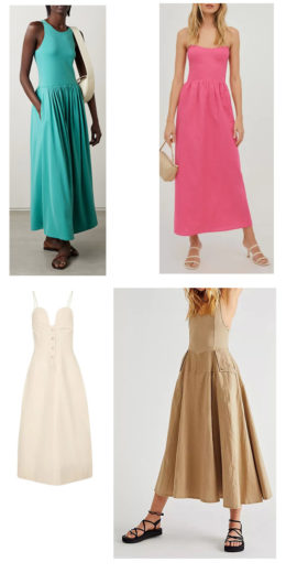 Fettuccine Linen Dress by Reformation: Also black or white. Strapless, midi length dress with a sweetheart neckline, smocked back bodice for a little bit of stretch. $248.00