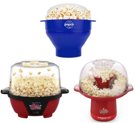 Orville Redenbacher’s Fountain Hot Air Popper by Presto: 10 x 12.5 x 12.5” Pops up to 20 cups of popcorn in about 3 1/2 minutes . Vented cover assures crispy popcorn; Base nests inside cover for compact storage. Makes as much or as little as you want from 10 to 20 cups; Popping capacity: 5 quarts Sale $29.99