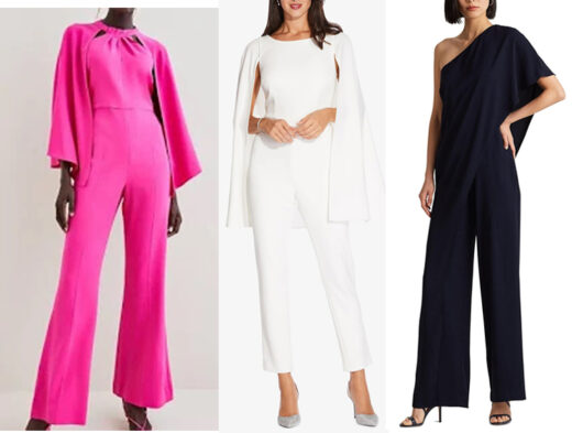 Crepe Jumpsuit with Cape by Adrianna Papell: features a boat neckline and fitted pants The cape splits at the back and conceals a hidden zipper closure. Crafted from stretch crepe polyester fabric $179.00 https://www.adriannapapell.com/products/crepe-jumpsuit-with-cape-in-ivory-ap1d103257?variant=37263574073544&gclid=CjwKCAjw5dqgBhBNEiwA7PryaGa879u4HJNbfDQVh3uXwUaDPuW6i3qorHzXNJPiDfNf-QuX-ub2NRoCo18QAvD_BwE