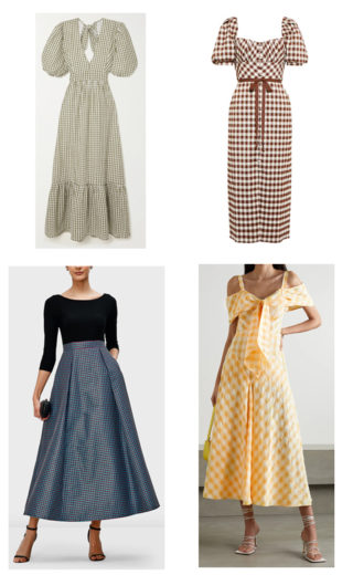 Gingham Midi Dress by Self-Portrait: vintage-inspired ruched sweetheart bust, covered button-down front and grosgrain ribbon-tie waist. Concealed back zipper. 98% polyester, 2% elastane $495.00