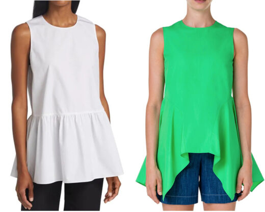Left: Latham Sleeveless Peplum Blouse by Lafayette48NY: Featuring shirring around the seams and a back button keyhole. Jewel neck 100% machine washable cotton Sale $201.99