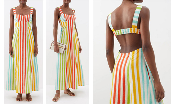 Azzurra Ikat-Stripe Cotton Dress by Emporio Sirenuse: Back cut out Side zipper closure Fitted bust Ankle length 70% off at $330.00