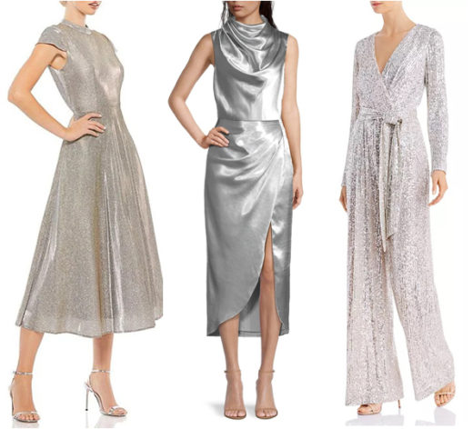 These days, women wear metallics through the day to cocktails with equanimity. A little shine brightens appearance and spirits.