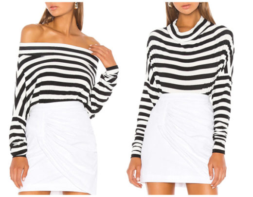 All In One Bodysuit by Norma Kamali: 95% poly, 5% spandex Elasticized neckline Convertible styling $145.00