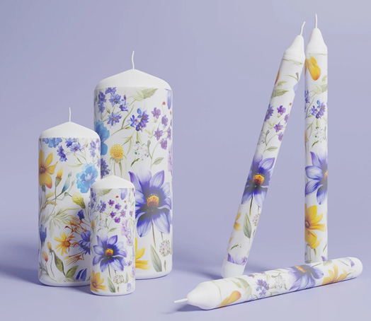 Candles with Floral Design 4 colors/flowers Individually sold $4.15-$15.61
