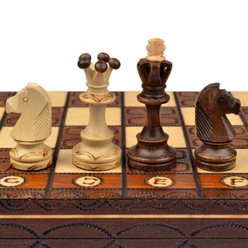 Weigiel Handmade European Wooden Chess Set with 16 Inch Board and Hand Carved Chess Pieces– Not only does he value a good game, he’s design savvy and prefers to own objects that express iconoclastic taste. The beech and birch wood 16 x 16 x 1 inch board is adorned with number and letter algebraic coordinates on the borders. When folded, its held securely shut with 2 brass clasps. Hornbeam and sycamore wood chessmen are felt bottom and weighted. The king measures 3.4 inches; the queen 2.6 inches. Each piece is eloquently detailed. Secured compartments provide room inside the board to store each piece. $46.46