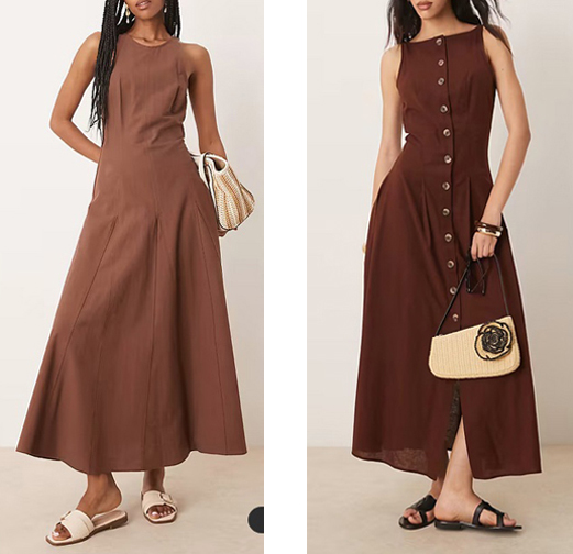 Right: Slash Neck Button Down Maxi Dress: Button down front. Sleeveless. Slightly nipped waist. 88% Cotton, 12% Linen. $44.99
