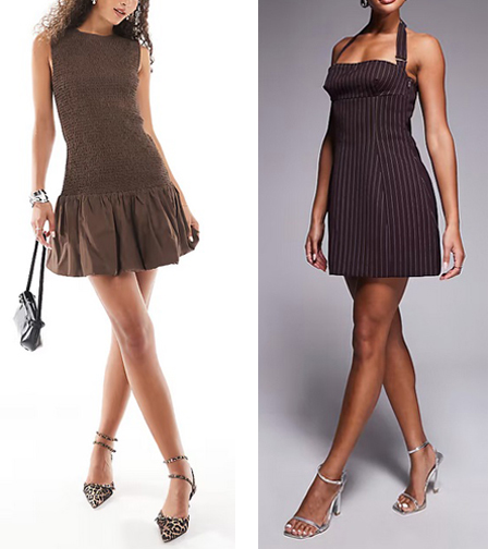 Left: Ghospell Athena Shirred Mini Dress: Stretch design. Round neck. Sleeveless style. Bubble hem. Slim fit. Sale $110