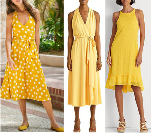 Center: Crepe Halter Midi Dress –Lauren Ralph Lauren: Faux halter neckline . Sleeveless . Threaded belt loops with removable self-belt . Pullover style. Full taffeta lining. Polyester. $155.00