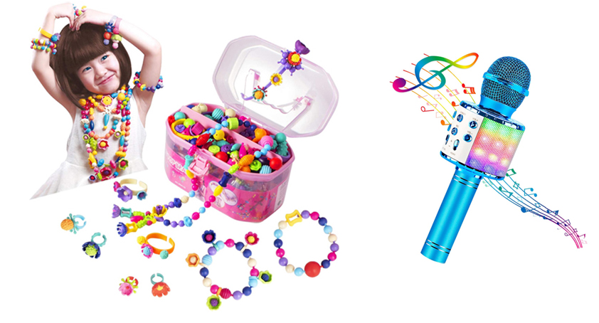 Left: BIRANCO Pop/Snap Beads Jewelry Making Kit: Necklace, Bracelet, Ring Creative DIY Set – 520 pcs No thread needed: Suitable for girls ages 3, 4, 5, 6, 7, 8 years old and up. Beads are connected by insert. $35.97