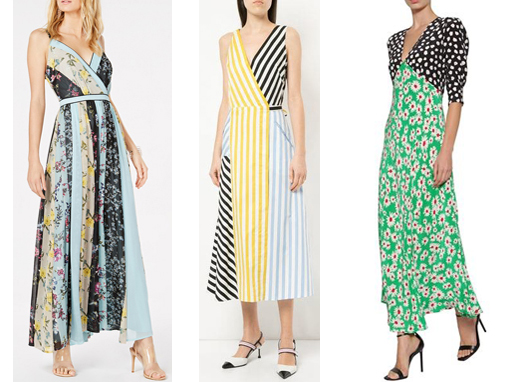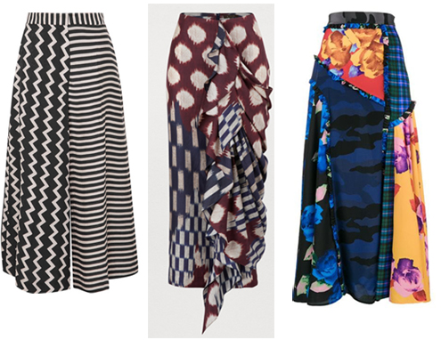Get ready for patchwork… Everything from irregular construction including raw edges to late sixties era hippie silhouettes to overlapping patterns without defined edges; patchworks of the same pattern in different colors and those featuring a cornucopia of prints.